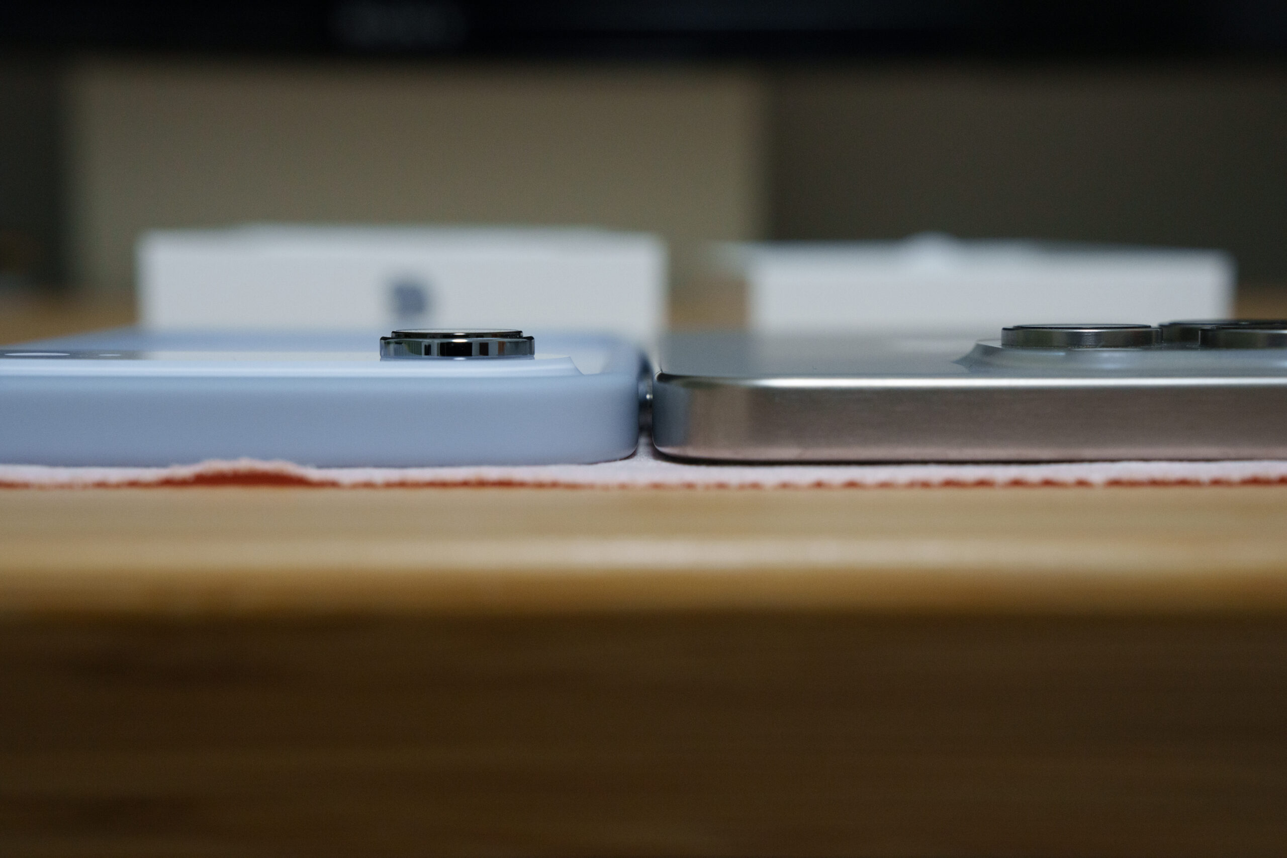 カメラの出っ張りはこんな感じ、机に置くとめっちゃガタガタします